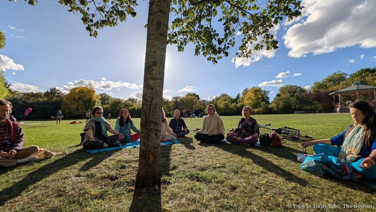 In Queen’s Park, London, Yoga in Daily Life practitioners and devotees gathered to pray for world peace at the Peace Tree, planted by Vishwaguruji and local dignitaries in 2010.